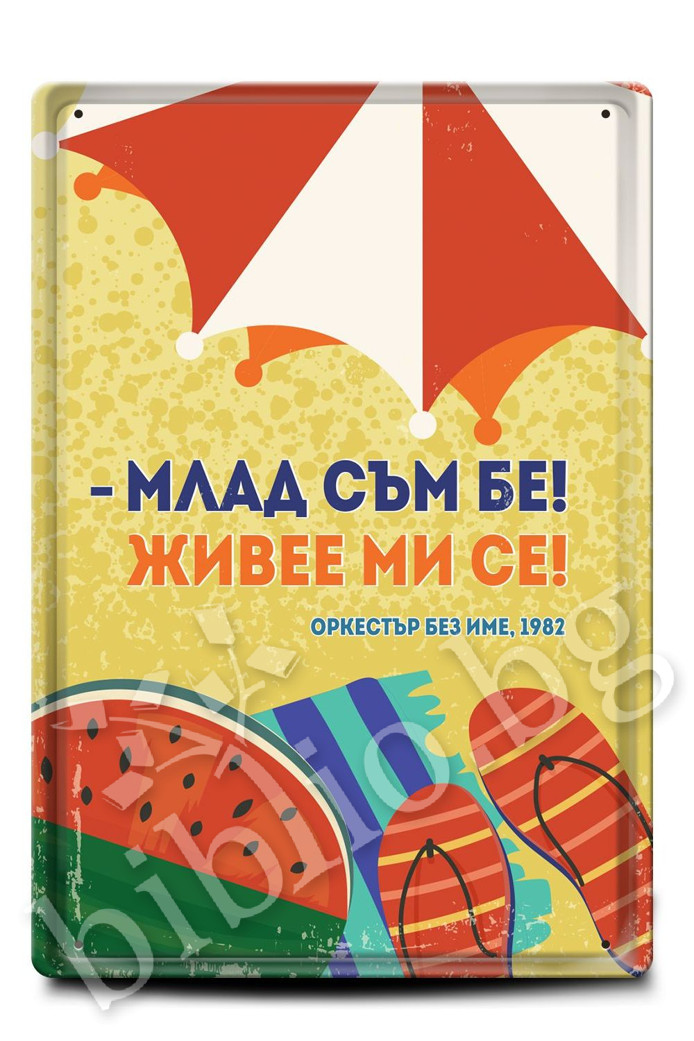 Метална табелка - A4 - Млад съм бе, живеее ми се