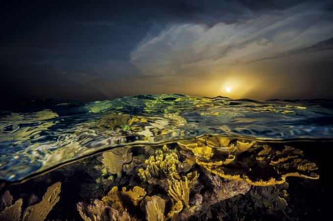 Една сутрин навлязохме сред мангровите растения и заплувахме из залятата гора, гъмжаща от облаци атерини. Измъкнахме се в откритите води, за да се гмуркаме с десетки издължени копринени акули, които образуваха идеален кръг около нас. По здрач се върнахме сред мангровите дървета и се спуснахме под водата с мощни прожектори. Последвахме един американски остромуцунест крокодил, който ловуваше безшумно като подводница. Беше невероятно да видим толкова изобилна плячка и върховни хищници в една-единствена екосистема – още повече само за един ден. Океанологът Фабиан Пина Амаргос подчертава, че този океански оазис процъфтява, тъй като Куба активно защитава резервата, където приливите и теченията допринасят за съхраняването на хранителните вещества и ларвите. До момента морската екосистема успешно устоява на обезцветяването на коралите, но по-топлата вода, по-високата киселинност и повишаването на нивото на океана я изправят пред същите опасности като другите рифове.