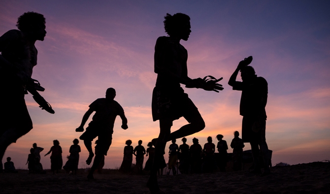 Стиснали копия, издялани от евкалипт, двамата мъже крачат боси по червената земя към брега. После се качват на малката алуминиева лодка и я подкарват през един плитък залив на Арафурско море в дивите предели на Северната територия на Австралия.