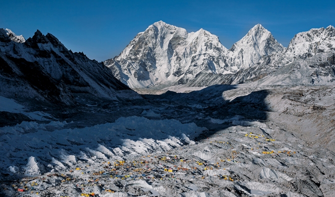 Докато пълзяхме нагоре по въжетата, закрепени на стръмния склон, с Пануру се бяхме вклинили между непознати хора над и под нас. Предния ден в Лагер III екипът ни беше част от малка група. Но като се събудихме сутринта, с удивление видяхме безкрайна колона алпинисти, които се точеха покрай палатките ни.