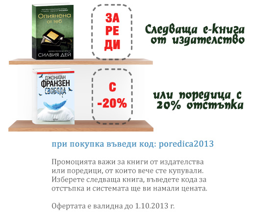 Сега е моментът.  Добавете книга или списание от същото издателство в кошницата, въдете промо кода: poredica2013