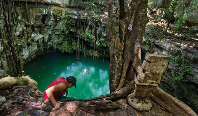 Подводният археолог Гийермо де Анда се приведе през ръба на кладенеца. „Кое е така, Артуро?" Неговият колега Артуро Монтеро, който плуваше долу, отново извика: „Зенитното слънце! Наистина е така! Слизай долу!"